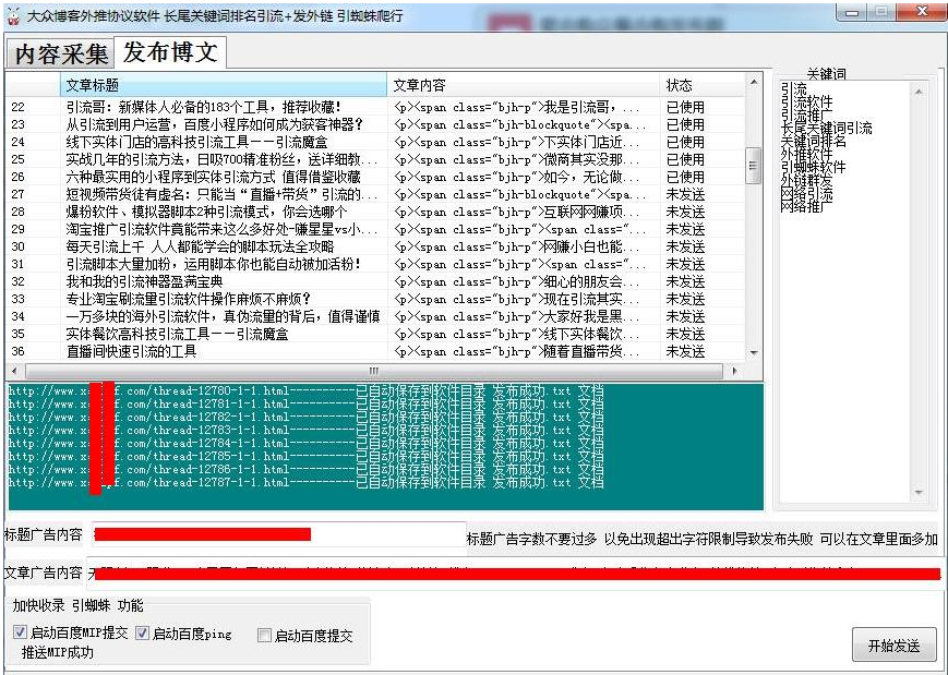 支持外链引蜘蛛 长尾关键词排名等 支持自动采集 自动伪原创内容 自动发布为一体