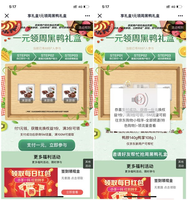 活动步骤: 1、自己支付1元,拉2个好友进来各支付1元(或用QQ小号支付无限撸)得到商品拼购券! 2、到了使用商品页面不要直接自己开团,在下方加入他人团下0元下单,不然还要拉人 提示“当前活动火爆,请稍后在试”可以确定是黑号,以后的活动都无法参加 PS:好友帮你支付1元也就自动开了他的团,所以不要浪费处!