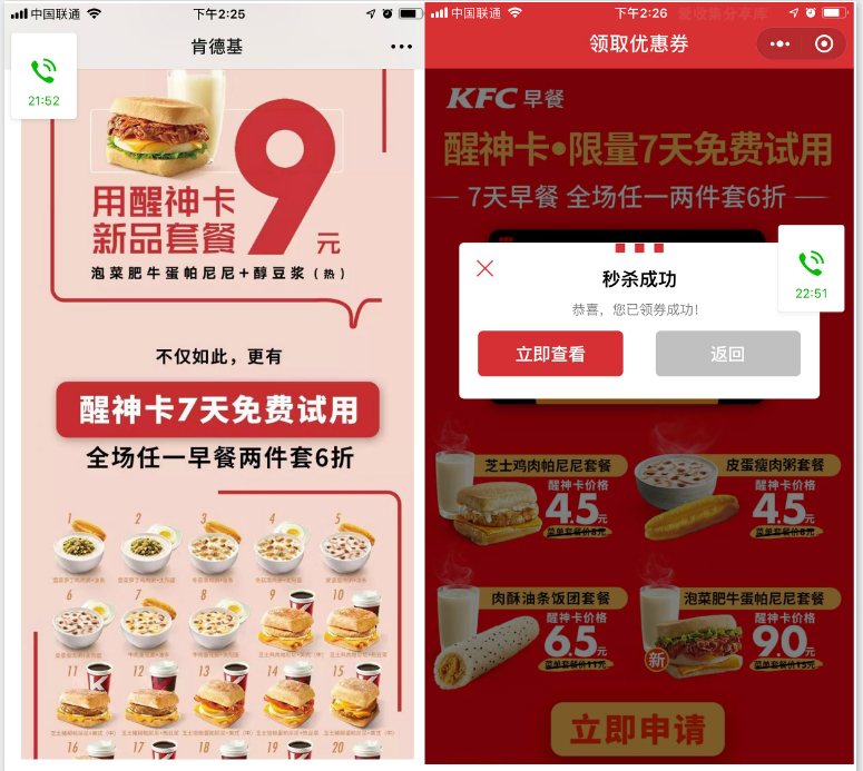 微信扫码进入领取,经常去肯德基吃早餐的赚了