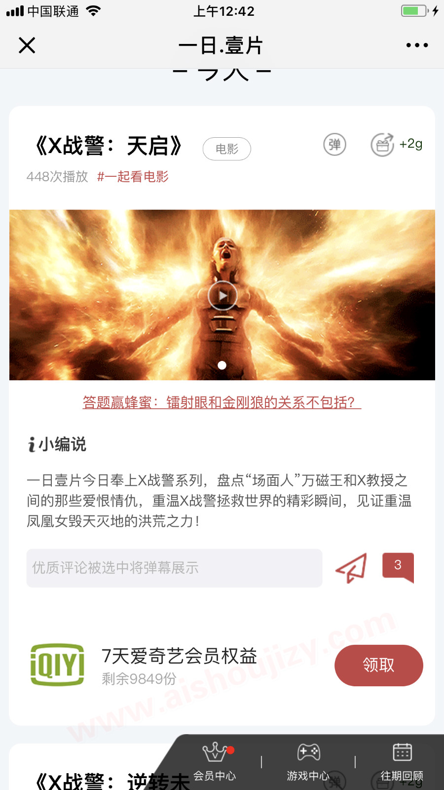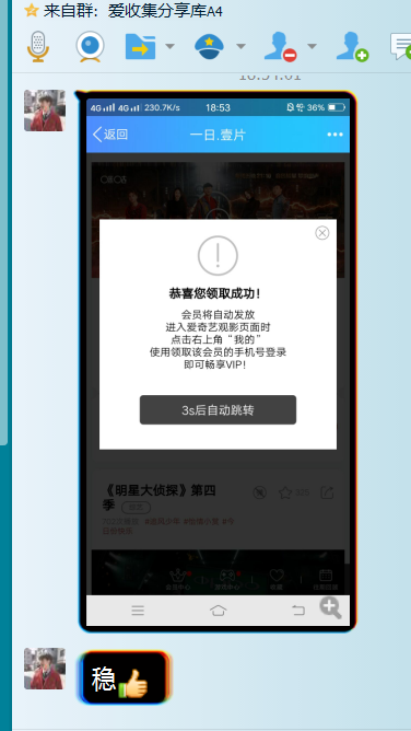 微信扫码→领取→填写手机验证→得到爱奇艺会员7天