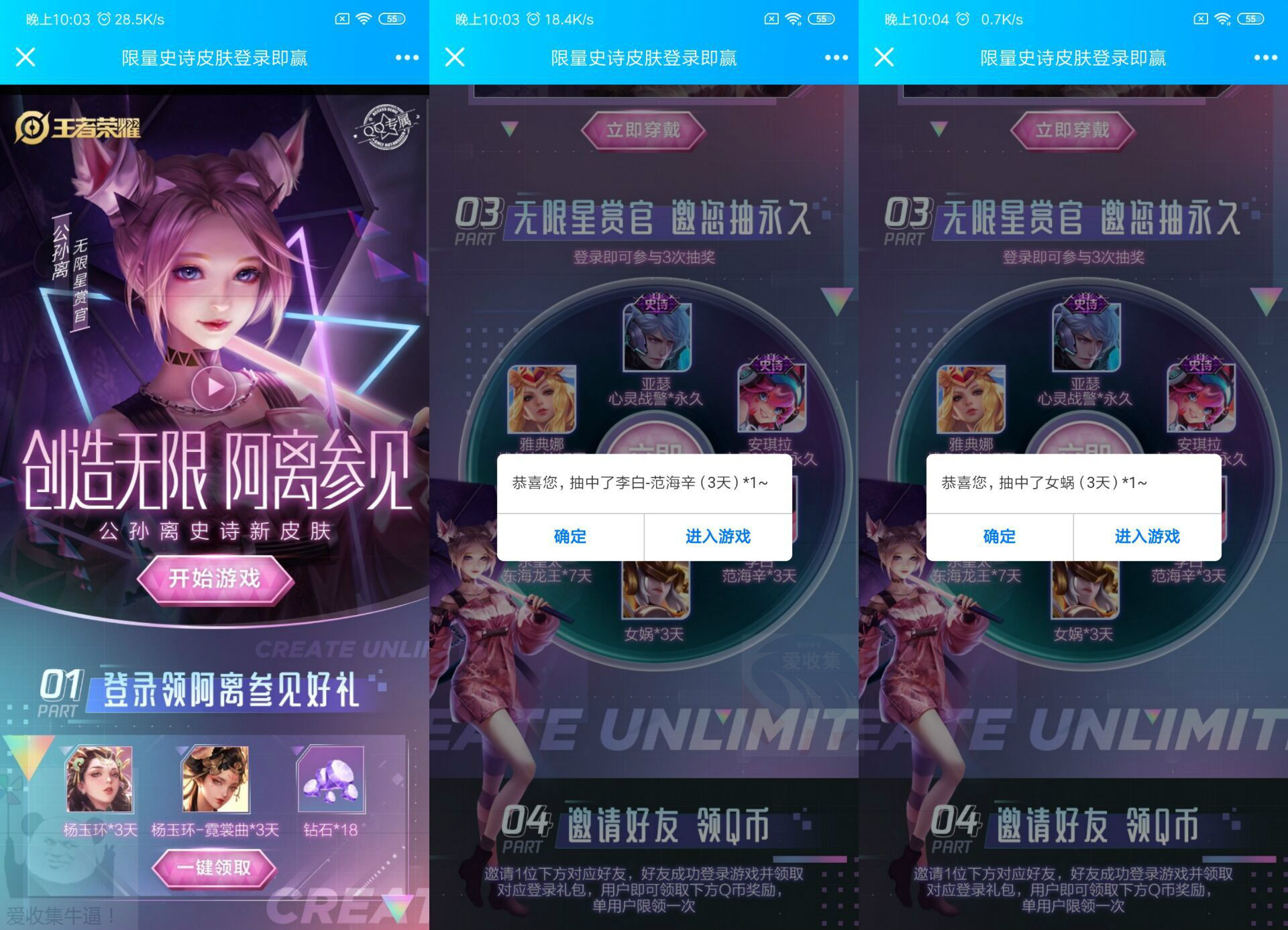 今日登录必领随机皮肤礼包,玩王者的快去试试!