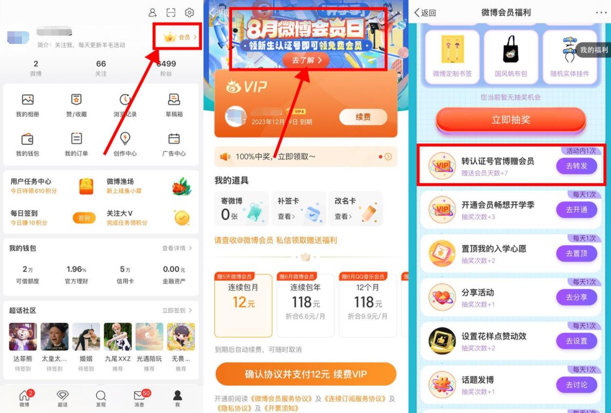 微博APP扫码或“会员-顶部-8月微博会员日”进入