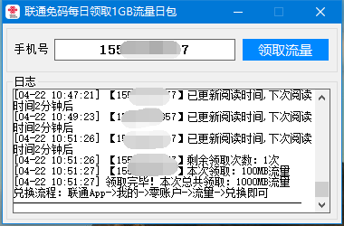 4月22日置顶:目前开放兑换2G流量日包了,累计2天就能兑换1次 软件每日自动领取1G流量日包,需运行1小时,每6分钟自动领100M, 每天上限1G,每天只需点击一次领取即可挂机自动领取!累计领取2天可兑换2G、 5天5G、10天10G日包,每月只能兑换3次! 流量查询与兑换:联通APP->我的->零钱账户->流量->兑换! 下载地址:https://pan.baidu.com/s/1l4UypNRzVsdqqim8V5KPqw 提取码:ejcr 下载地址蓝奏网盘 |