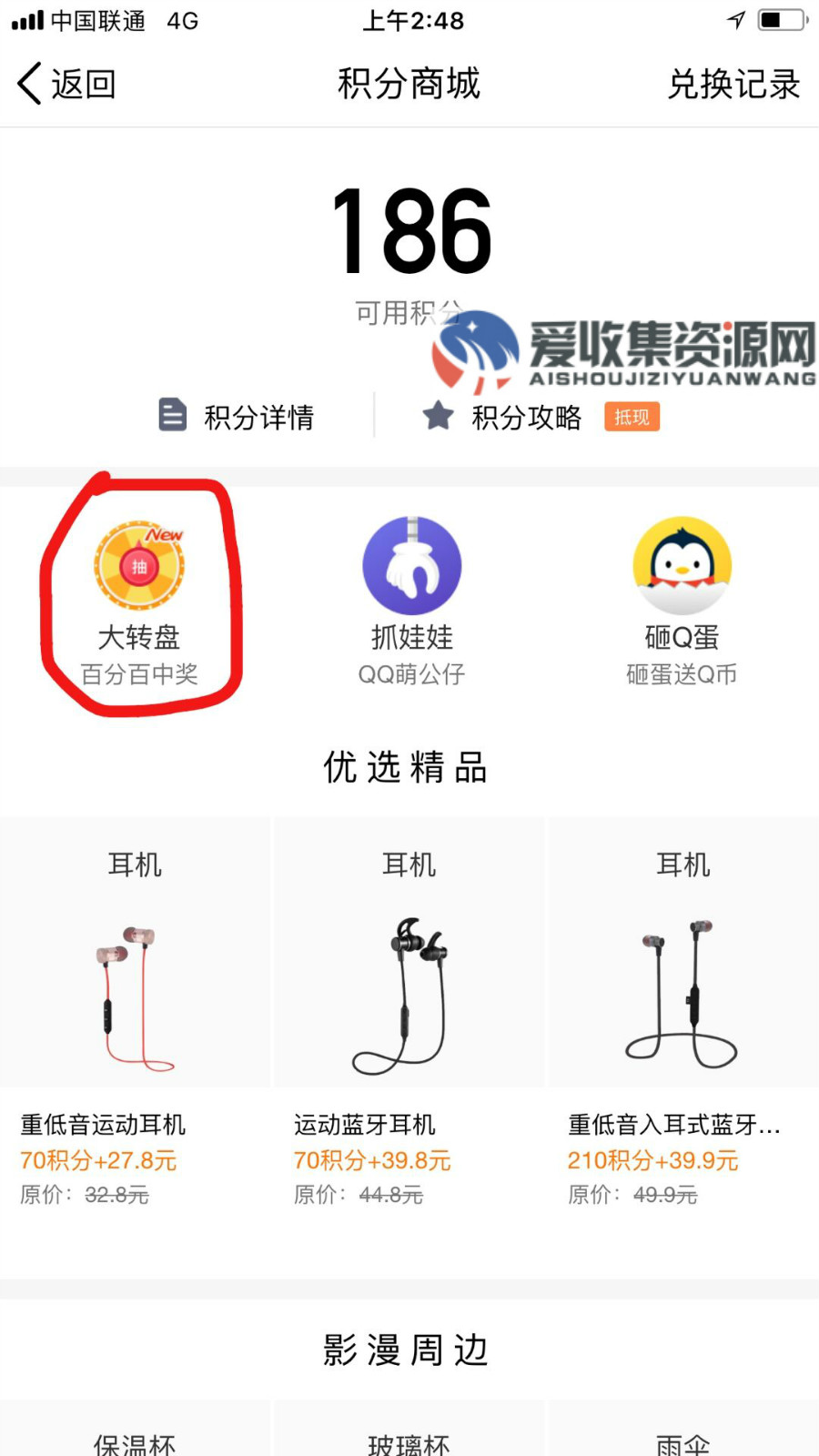 1、手机QQ→QQ钱包→积分→大转盘→10积分抽奖1次→必中其中一个