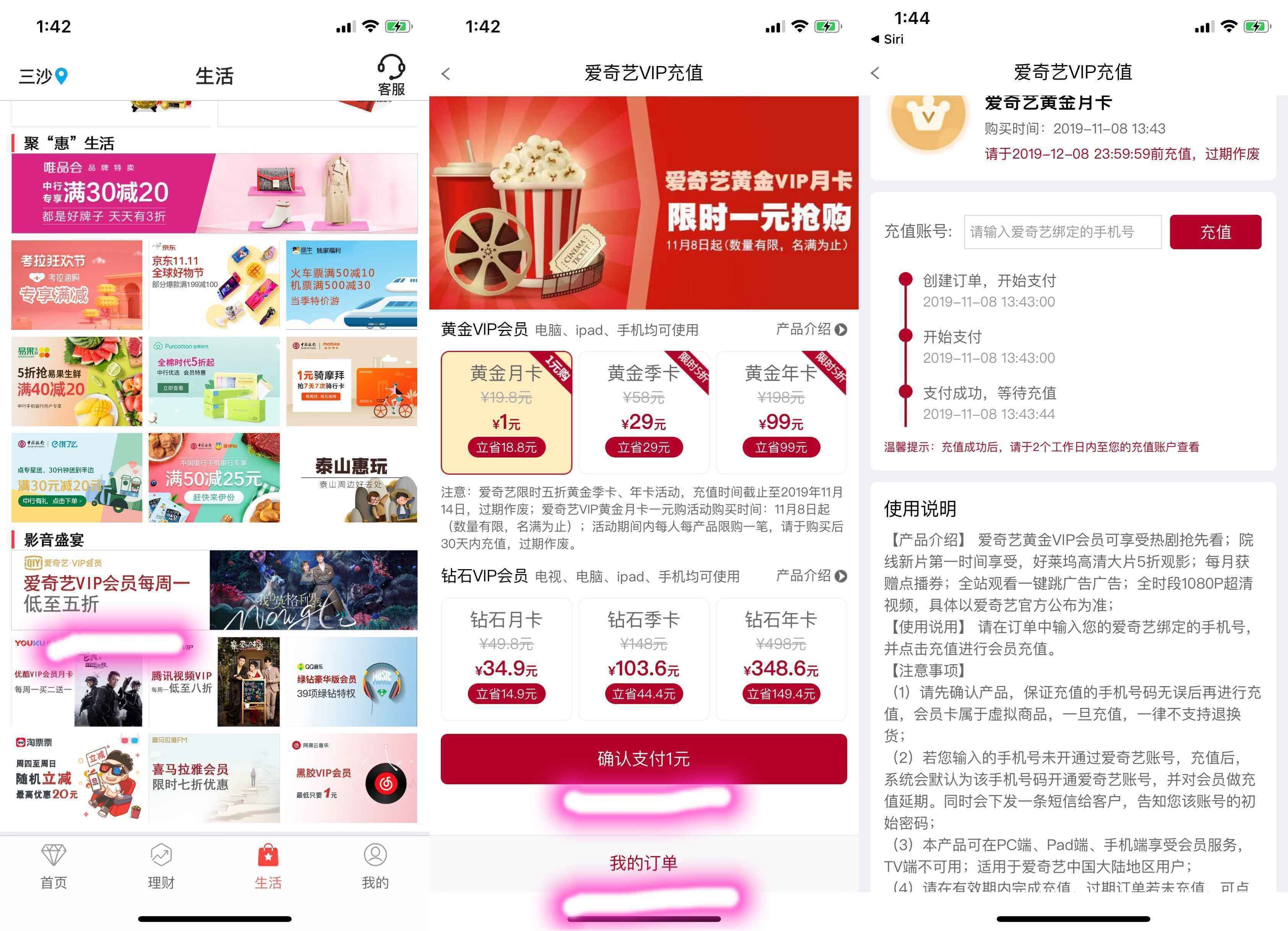 1.打开中国银行APP->生活->下拉到底点->左侧边->“爱奇艺VIP会员每周一”