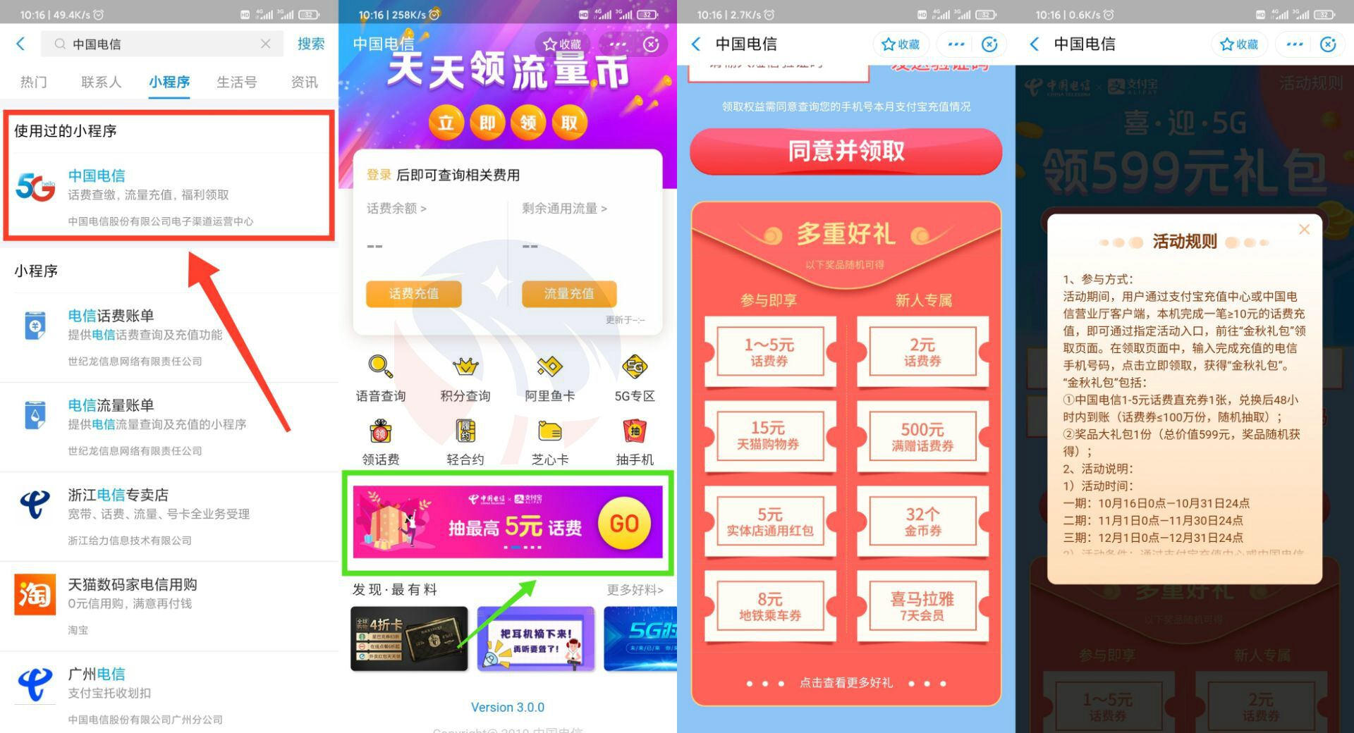 如图横幅参与->需要当月完成一笔10元充值即可领取!