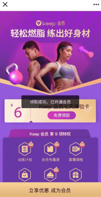 一款提供健身教学、跑步、骑行、饮食指导等一站式运动解决方案的APP 打开地址登录手机号后直接领取->限量2万份->如果晚点提示领取失败就是领完了! 地址:https://mo.gotokeep.com/topic/494516673072623616