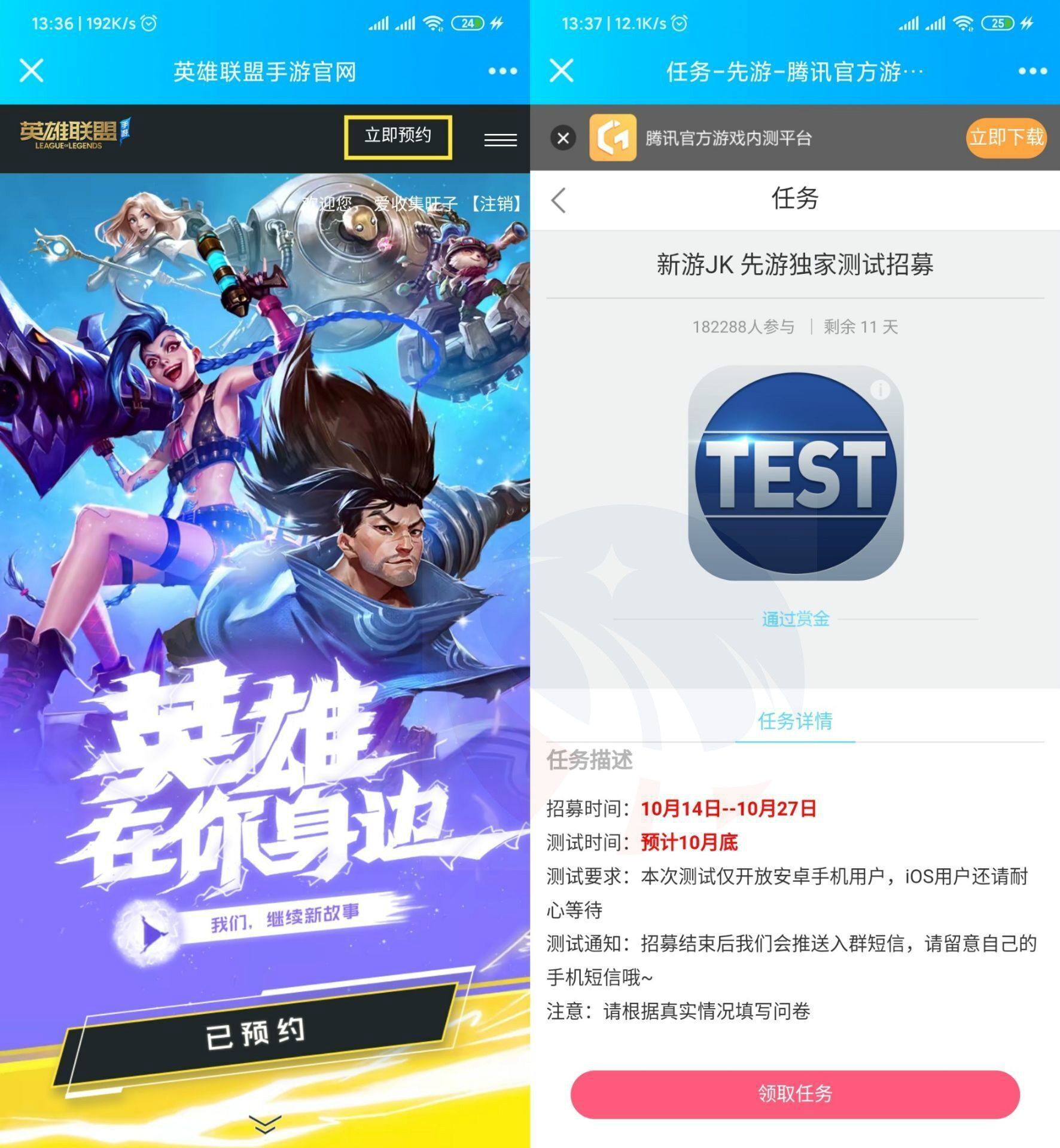 英雄联盟手游预约地址:https://url.cn/5cvulwH 测试账号资格申请链接:https://url.cn/5GirEHa 测试版LOL手游下载地址:https://url.cn/508wbw0 PS:前几天发的是预约领礼包,今天这个是报名内测版 大家先去预约申请资格,资格审核通过直接就能玩了! |
