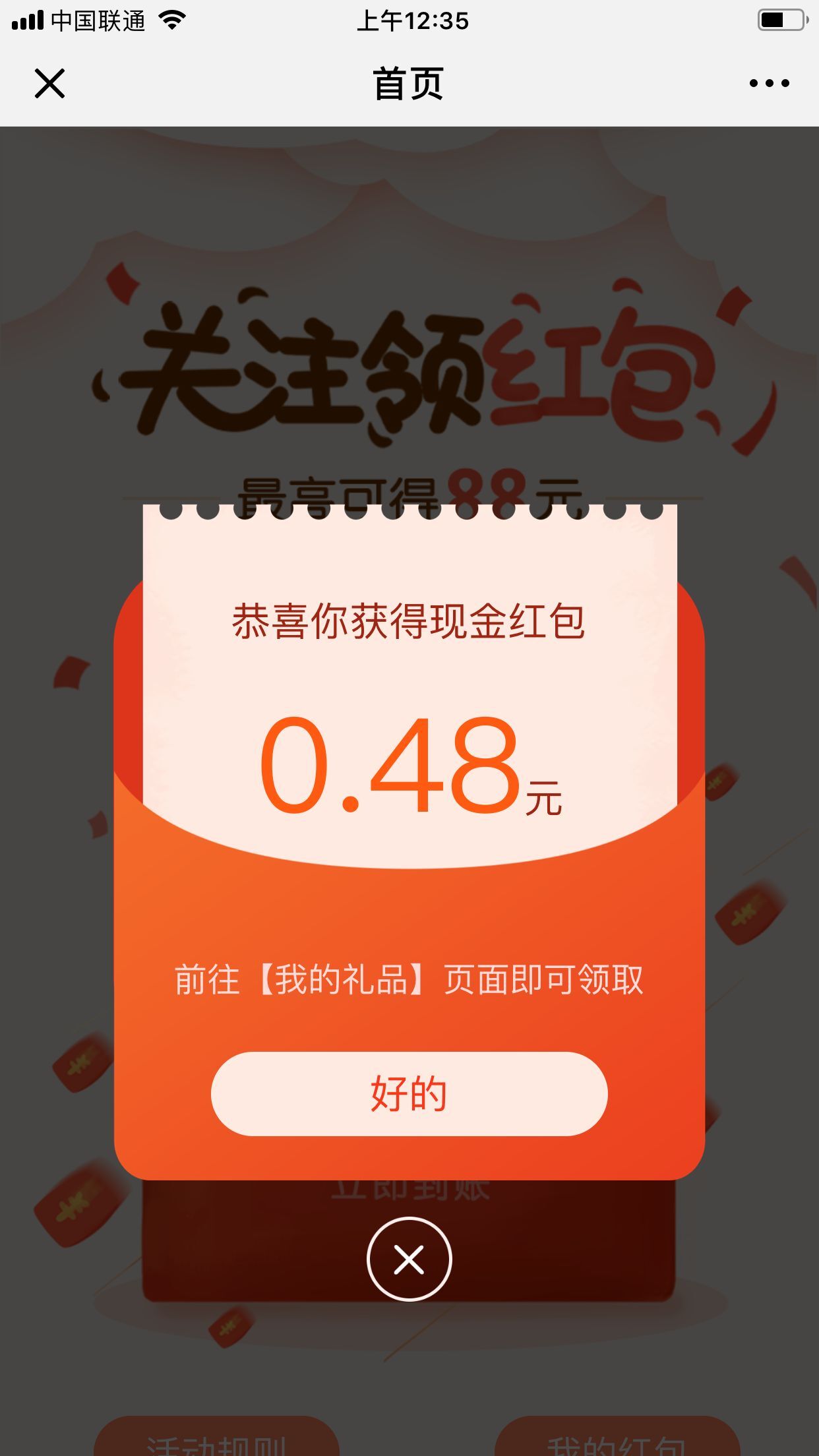 关注后点领红包 输入验证码登录 再点击领 八月亲测秒推送