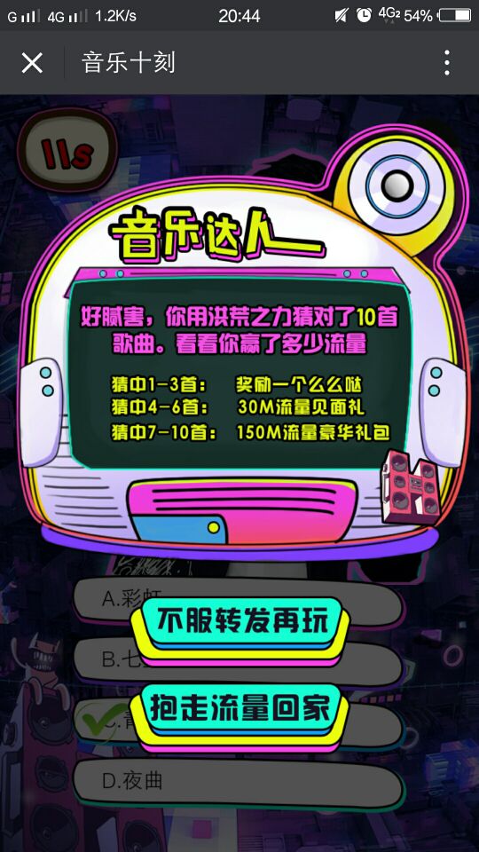 3.猜中7首以上就可以领流量