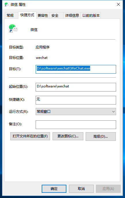 有空格路径需要添加英文双引号 ,例如:D:\software\"we chat"\WeChat.exe