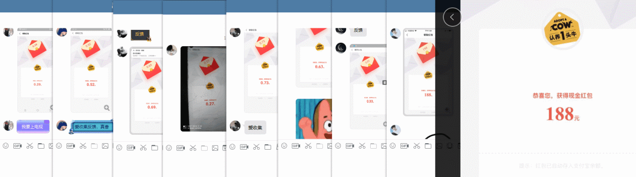 2、点击奶牛->再点左上角开启惊喜->秒到随机红包