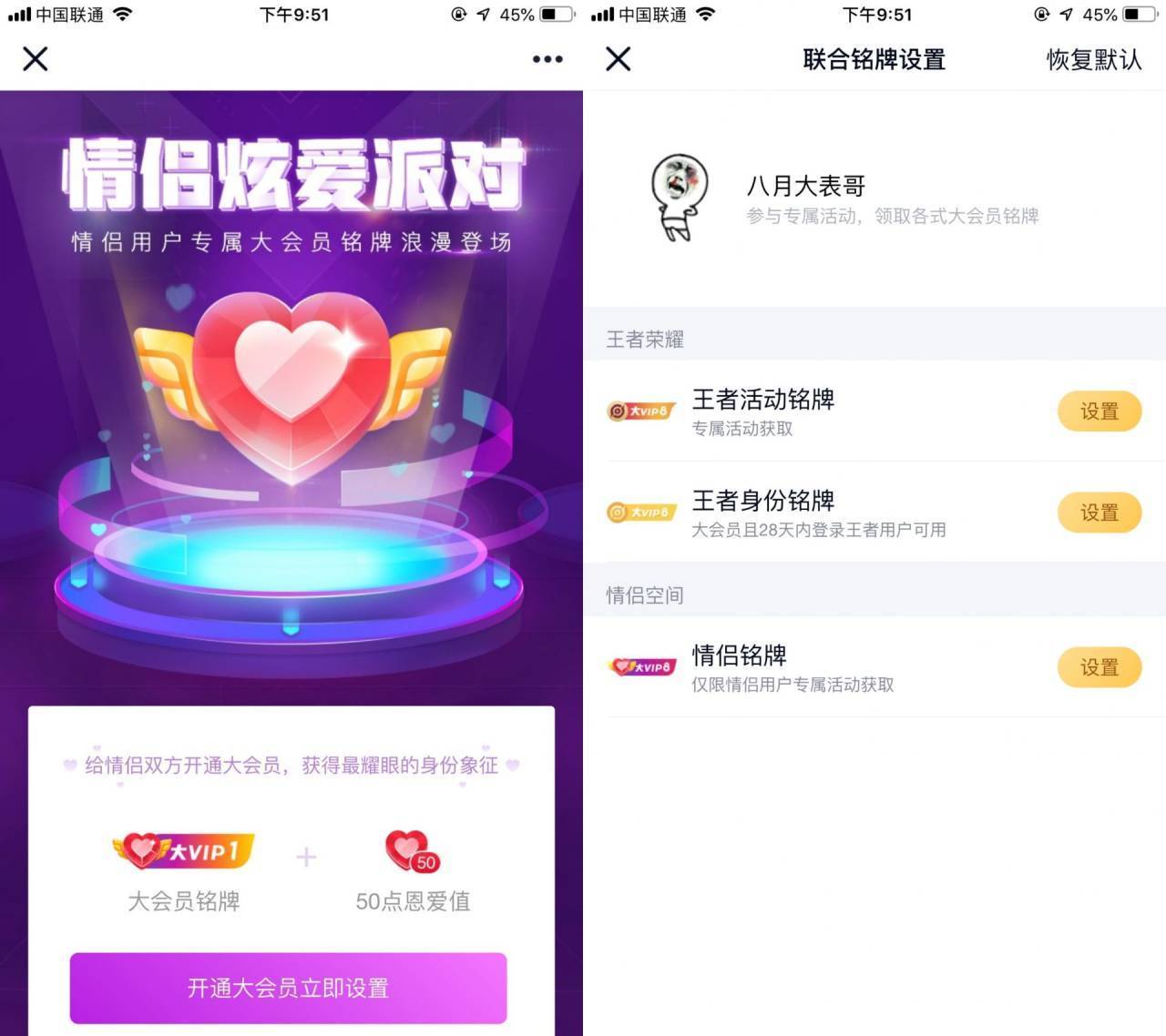 QQ大会员最新推出铭牌+情侣可设置,看来又要吃波狗粮了。