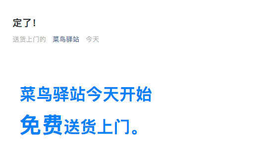 今日,菜鸟驿站在官方微博发布消息称:今天开始免费送货上门。
