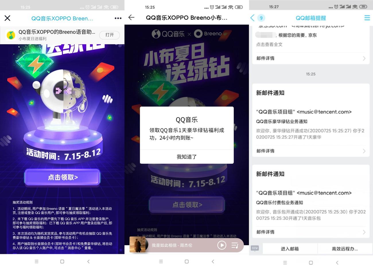 7月25日置顶新一期活动 1、手机下载QQ音乐->打开活动地址->跳转到APP参加 2、点击领取中了绿钻会秒到账,->临时下载个啥歌曲可以 活动地址:https://y.qq.com/jzt/yuanchanglaile/e1806f.html 活动时间:2020.8.12结束 |