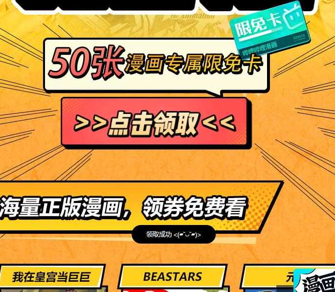 本权益需登陆哗哩哗哩漫画APP使用,每位用户可领取漫画 专厲限免卡50张,在此页面领取后登录APP,权益自动到账。 以下作品,每部5张: 鬼灭之刃、一拳超人、战国千年、斗罗大陆、斗破苍穹、之大主宰,J0J01-5.航海王、龙珠.名侦探柯南、 圣斗士星矢专属限免卡可用于免费问读对应付费漫画,1张限免卡可解锁一话付费章节3天。 限免卡有效期: 7天领取链接:https://www.bilibili.com/blackboard/topic/activity-QDMNnu0hLF.html |
