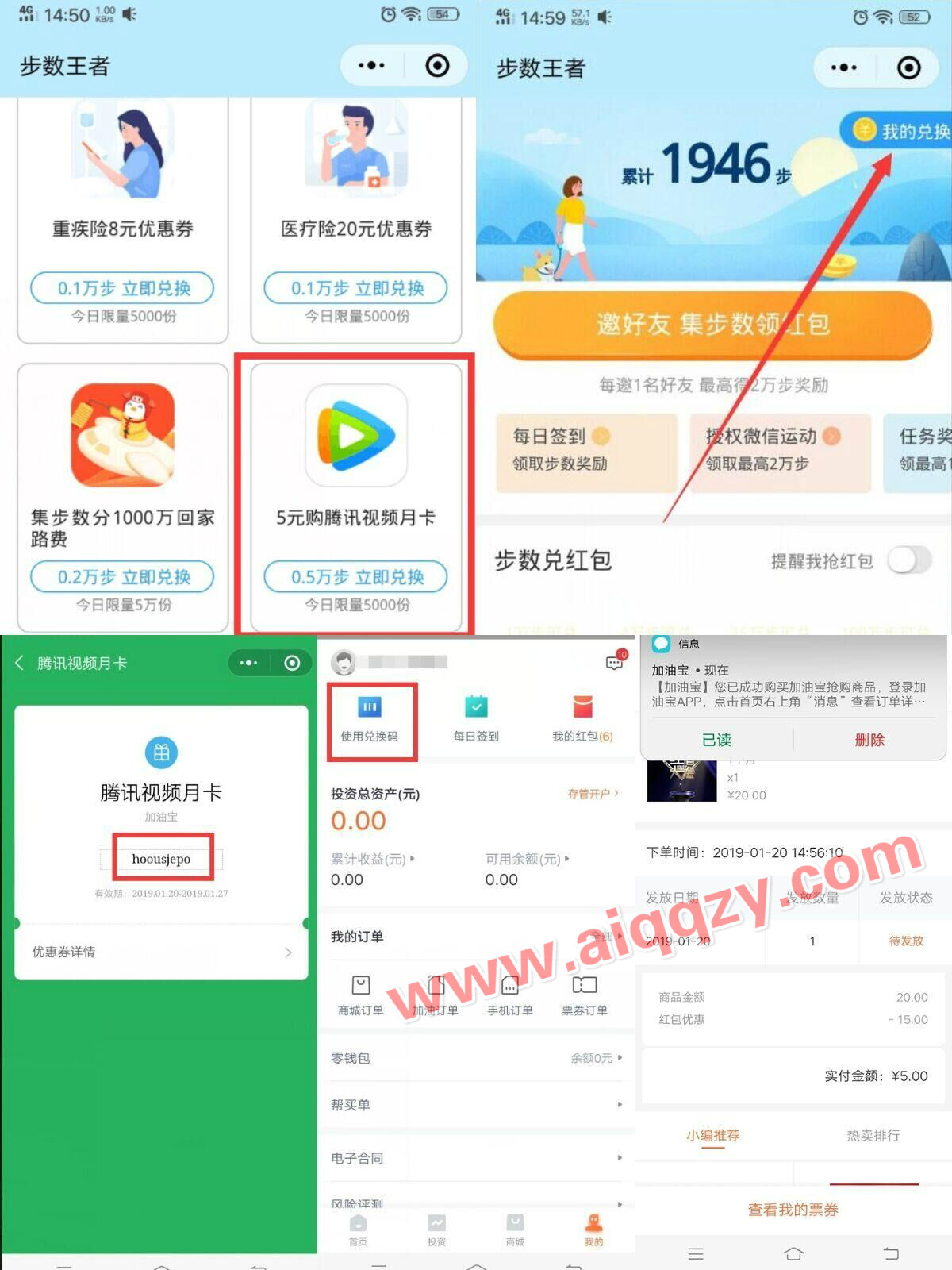 3、兑换成功后还是这个小程序右上角,我的兑换里会有一张5元购腾讯月卡