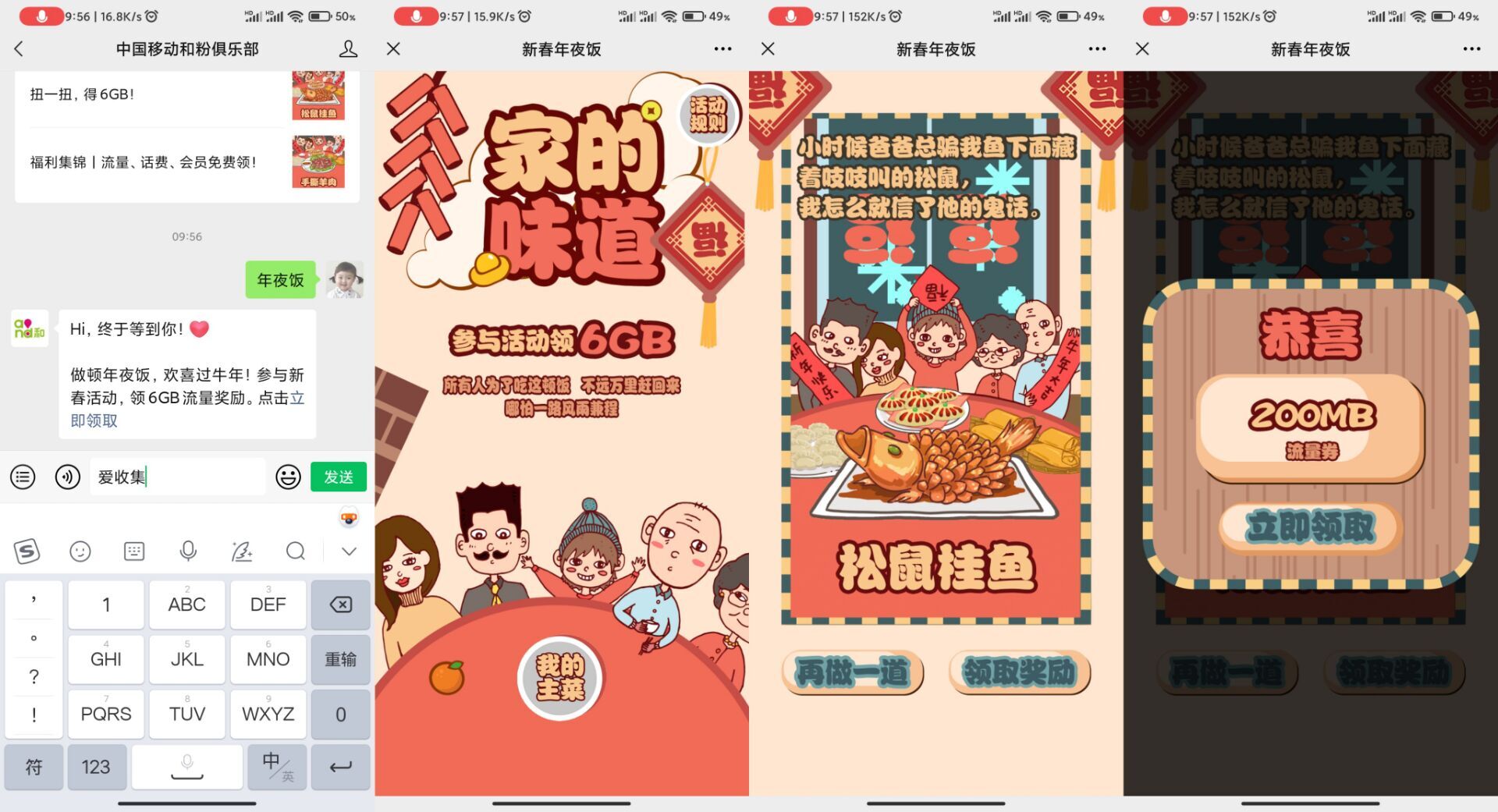 2、发送->“年夜饭”和“扭蛋”->点推文进去必中->手动兑换流量!
