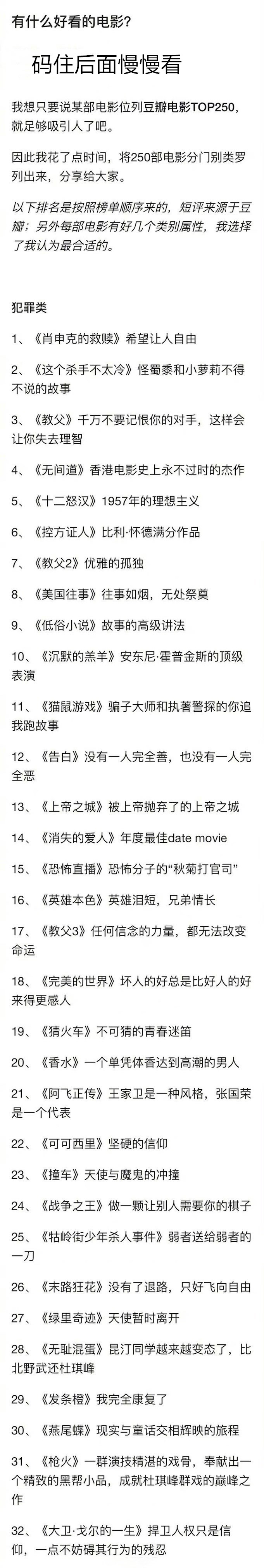 暑假剧荒的来看看!根据以往豆瓣电影top250整理
