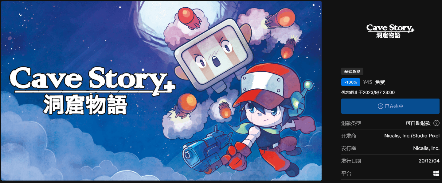 本周又免费送1款游戏 《洞窟物语+》是一款独立制作游戏,以其原创的独特神秘故事情节以及快节奏游玩风格而闻名。 在这款令人回想起古典 8 位及 16 位风格的游戏中,奔跑、跳跃、射击和飞行,来展开一场巨大的冒险吧! 领取地址:https://store.epicgames.com/zh-CN/p/cave-story-plus 活动截止于2023/09/07 23:00 |