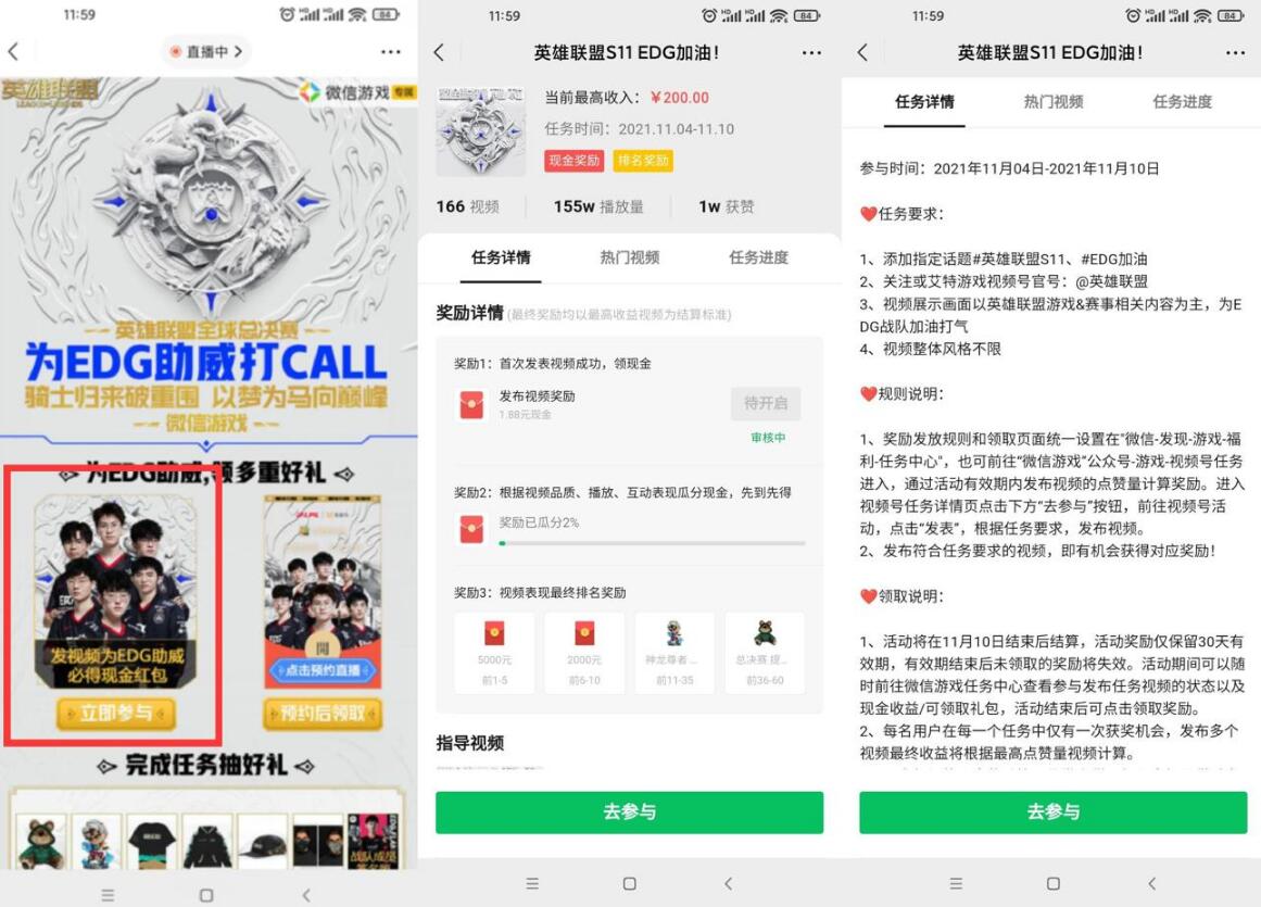 发表描述那里必须写上:#英雄联盟S11 #EDG加油 @英雄联盟