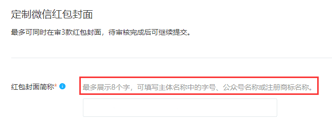 封面简称用于快速识别出红包封面的定制方,比如你是公司,那么你可以写公司名字,或者产品名字。