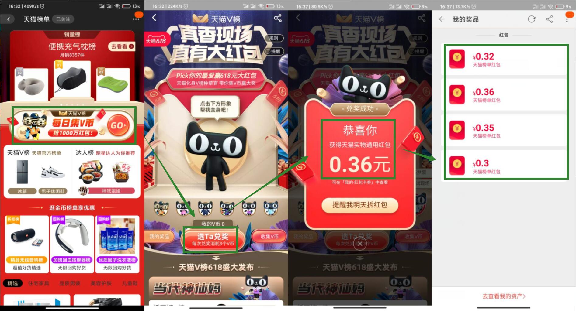 一共可以兑换4个红包->红包无门槛限6.16~6.20间使用