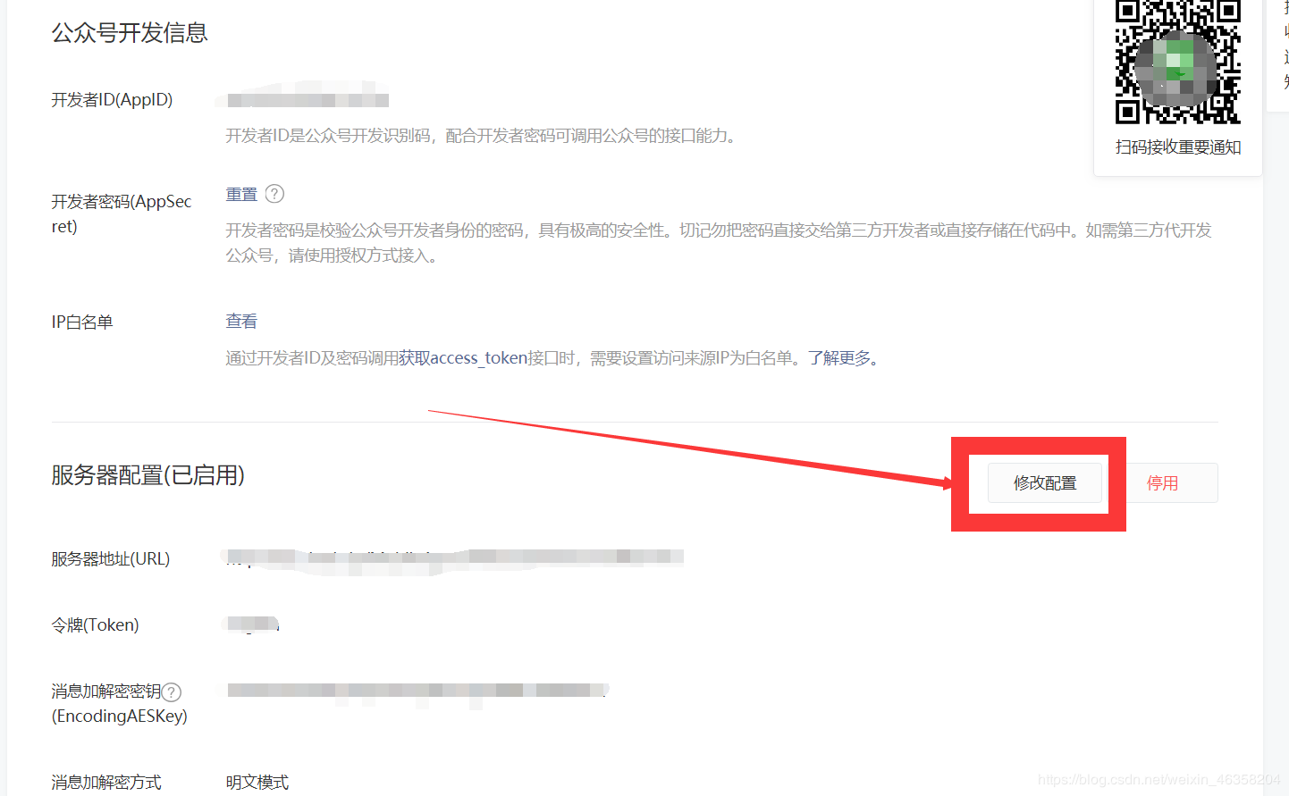 我这是配置好的 我们选择修改配置 。 第五步、看图片上的文字内容进行配置 提交的过程中可能会出现 黄色或者红色的错误提示 重新多提交几遍即可解决。 公众号URL:http://api.chati.vip/MobileAgent/Wechat/index/smallid/1973
