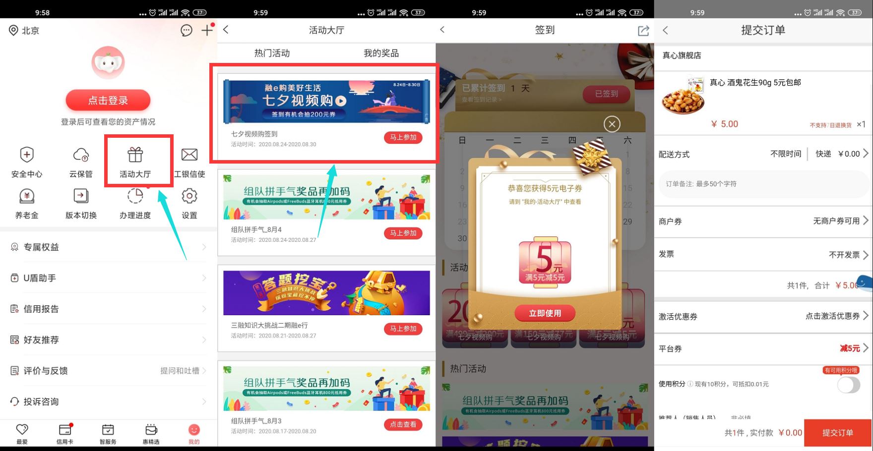 1、登录工商银行APP->去活动大厅->看有没有“七夕视频购”这个活动