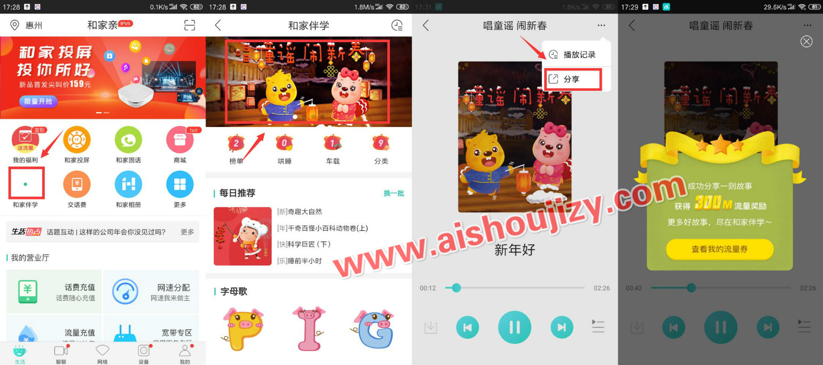登录后点击首页“和家伴学”->点击第一个幻灯片进入分享后
