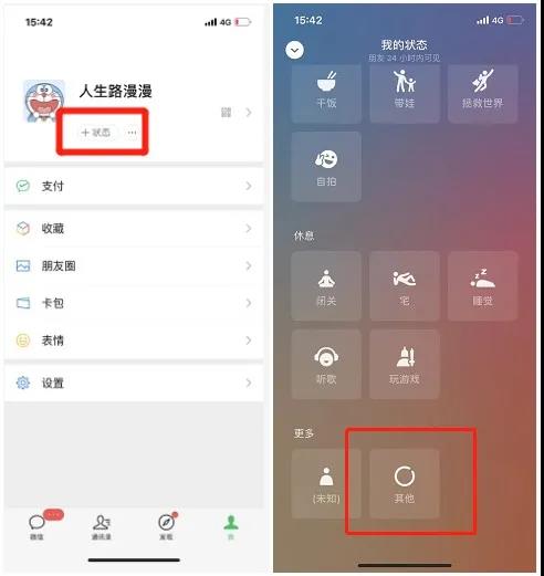 前几天发“死神背景”的时候就告诉了大家,小编的女朋友们经常会在微信上 捣鼓一些稀奇古怪的东西 这不,微信状态又被她们玩出花了。 你看,这个“5G在线”的在线状态像不像那么回事? 其实设置方法很简单,相信聪明的爱友都不需要看我接下来的废话了 首先,我们进入到微信状态,下拉到最底部,选择【其它】状态 然后需要手动输入“5G在线” 最后直接发布就行啦! 发布之后,小伙伴在聊天框就能直接看到状态内容,状态字体为蓝色