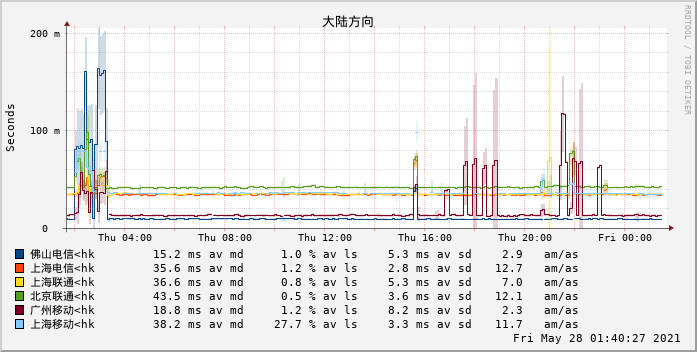 大陆三大运营商、国际一些监测点之间的网络状况,基于 TCP。