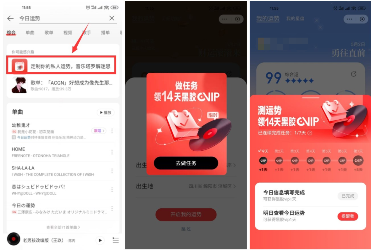 1、打开网易云音乐APP搜索:“今日运势”