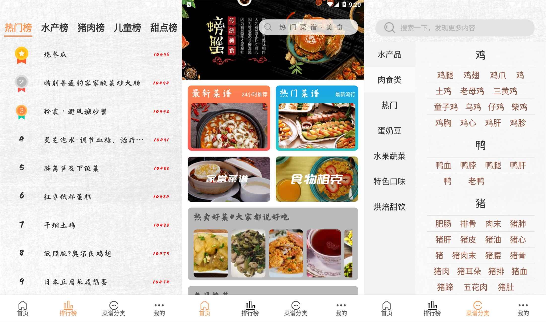 包括家常菜,西餐,烘焙食谱,减肥餐,健身餐,宝宝辅食,