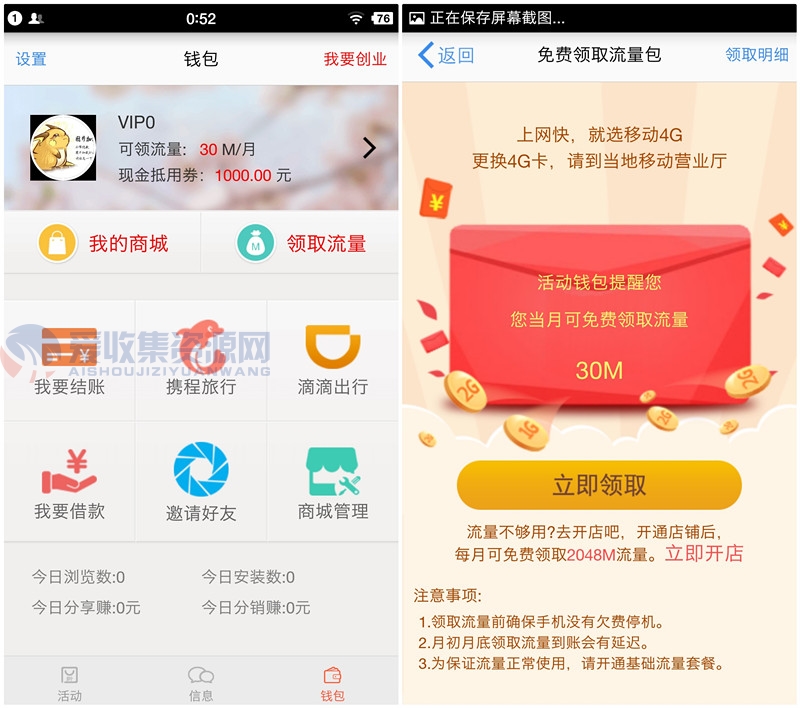 手机号码一定要一次填对填错了会很麻烦!软件底部点击菜单 进入钱包 顶部领取流量!