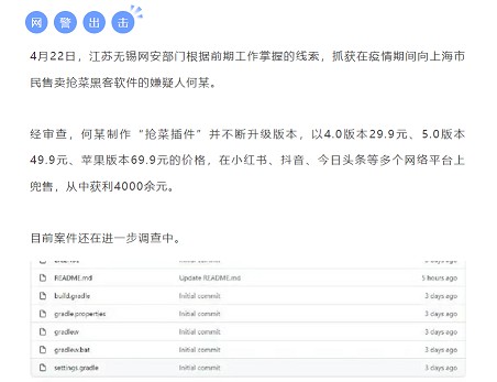 据公安部网安局消息,4月22日,江苏无锡网安部门根据前期工作掌握的线索, 抓获在疫情期间向上海市民售卖抢菜黑客软件的嫌疑人何某。 经审查,何某制作了一款“抢菜插件”,在小红书、抖音、今日头条等多个网络平台上兜售, 并推出了多个版本,其中4.0版本29.9元、5.0版本49.9元、苹果版本69.9元, 截止案发何某共计获利4000余元“ 目前案件还在进一步调查中。警方表示,“黑客”朋友,不要被眼前的利益所惑, 你的才华不该被浪费在投机取巧、违法犯罪上面,这只能为你带来自毁前程的结局。 广大市民,不要被眼前的便利所惑,你的“插队”行为,除了给自己带来风险, 还有可能违反《消费者权益保护法》,相关部门、组织必将采取有效措施予以坚决制止。 |