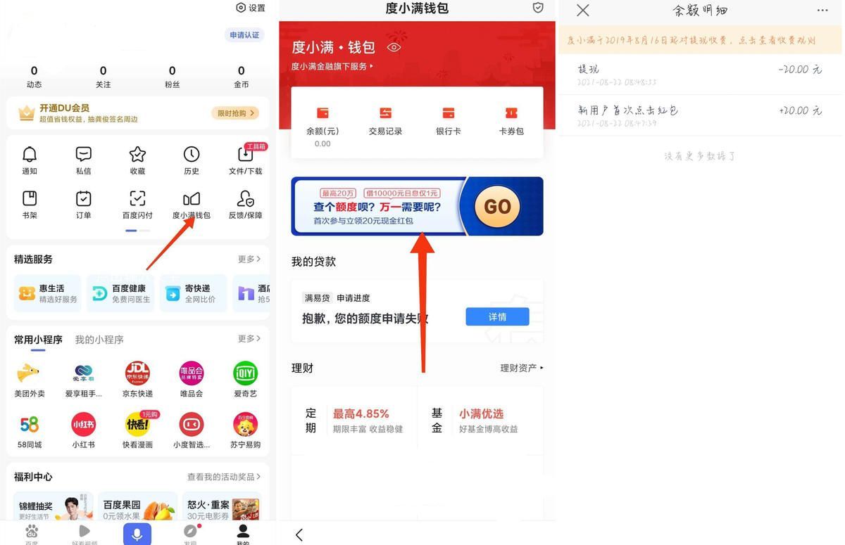 打开百度APP->我的->点度小满->如图进入横幅->资料乱写、选学生+无稳定收入