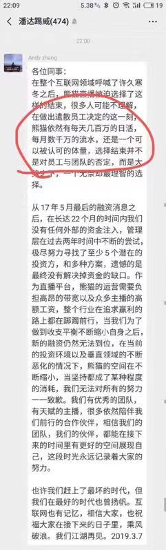 熊猫直播已进入破产清算,联合创始人、副总裁庄明浩及多位高管也已经离职