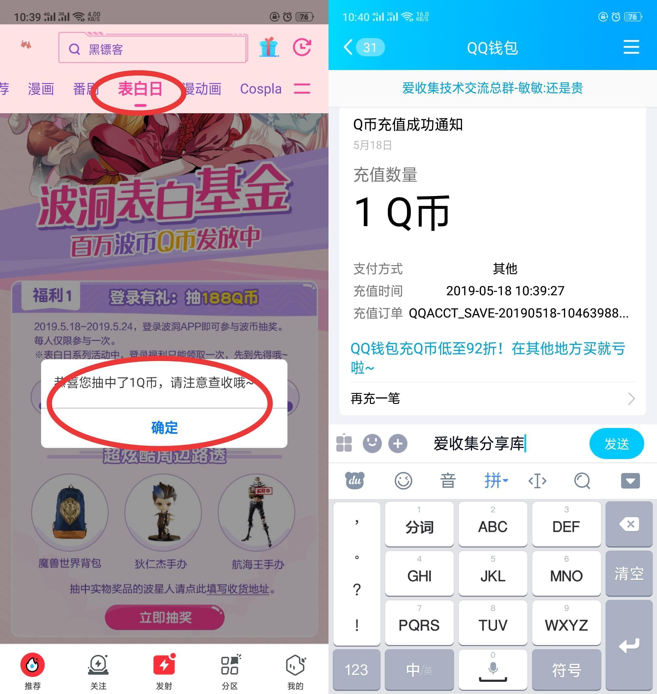 QQ登陆-首页-表白日-下拉抽奖-基本必中1Q币