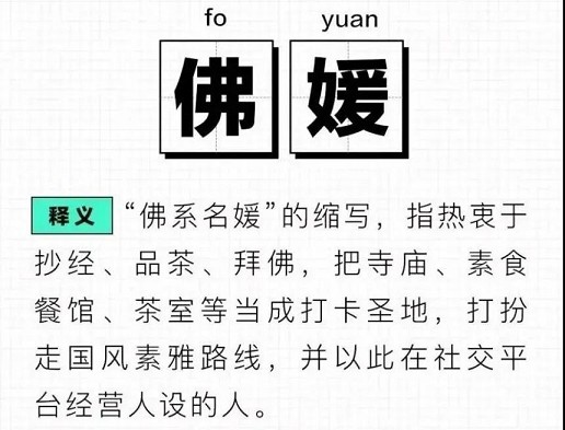 是和佛有关系,指喜欢晒手抄经书,在庙摆拍,喜欢炫耀品茶,焚香,禅修的一类媛网红。 最近佛媛风的确很火,小编就经常看到一些穿着火辣的网红扎堆逛庙抄经拜佛 不过这种不正内容火的快,自然也凉的快在很多网红开始跟风效仿时,也引起了官媒的注意 工人日报一篇批“佛媛”的刊文中这么写道:笔者不由地想到