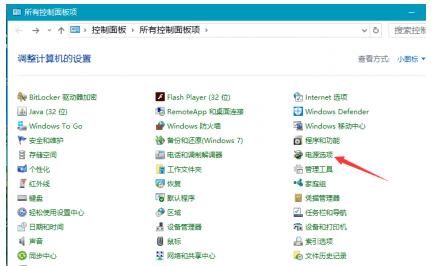 第一步,打开控制面板,选择电源管理。