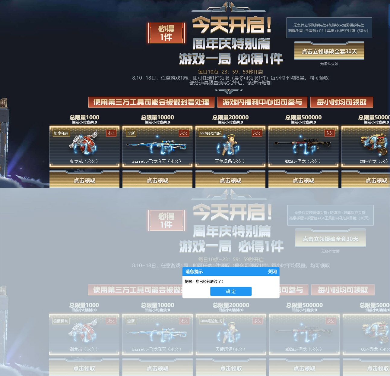 穿越火线端游周年庆玩游戏得永久武器