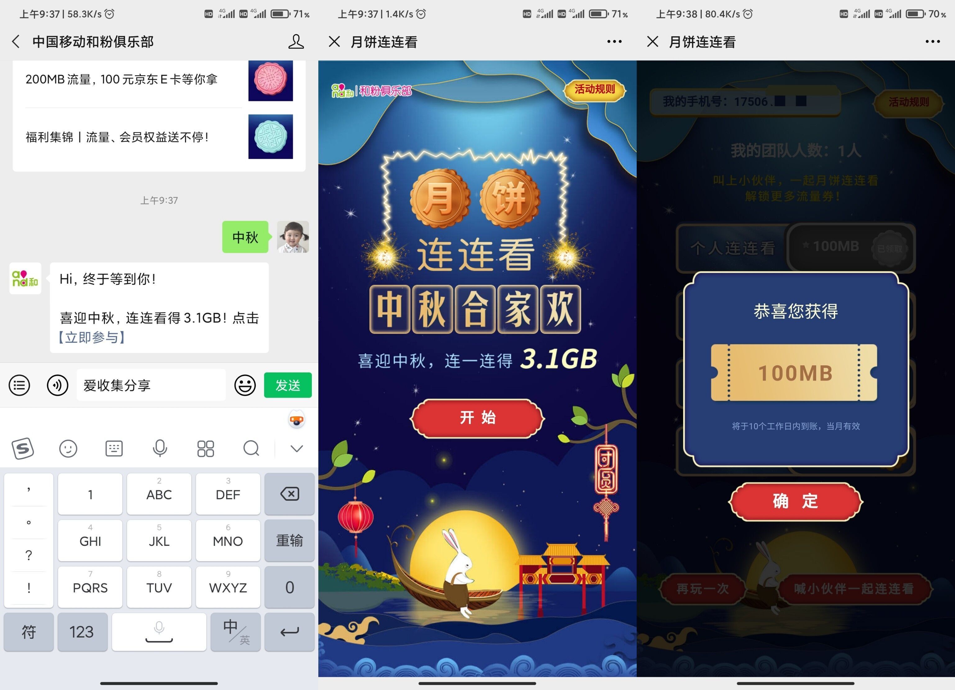 微信关注“中国移动和粉俱乐部”->发送->“中秋”