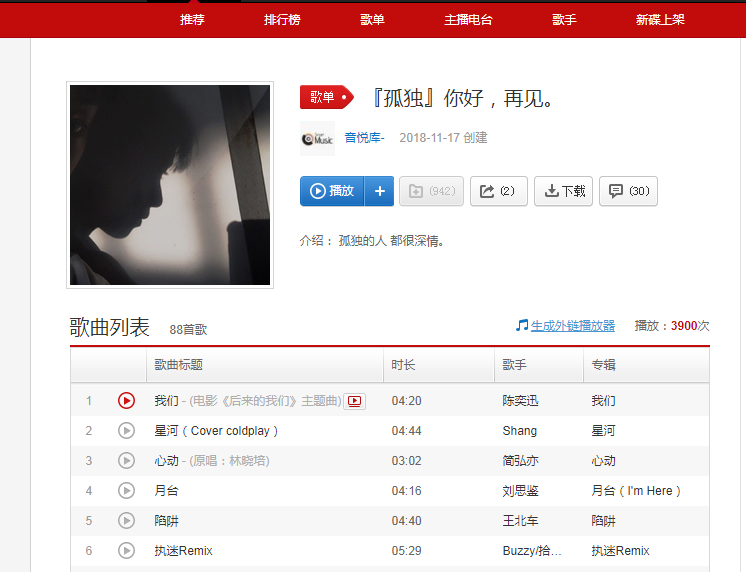 分享一批孤独人喜欢听的歌曲,感觉一个人听挺有感觉的~