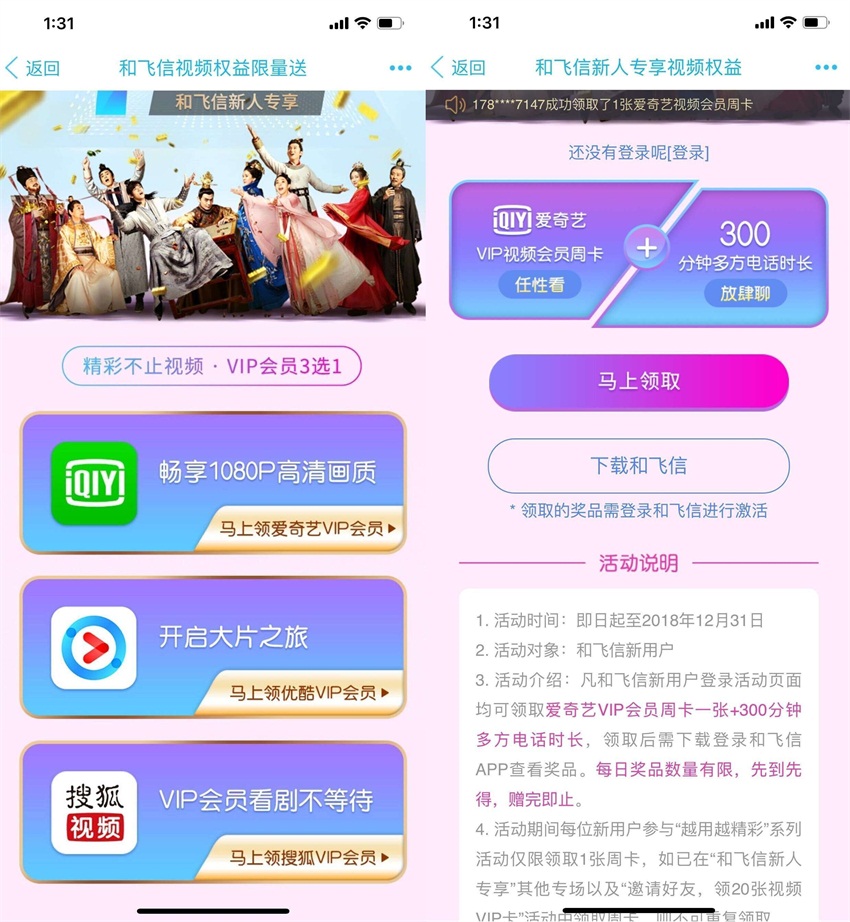 活动地址:https://feixin.10086.cn/rcshd/video/