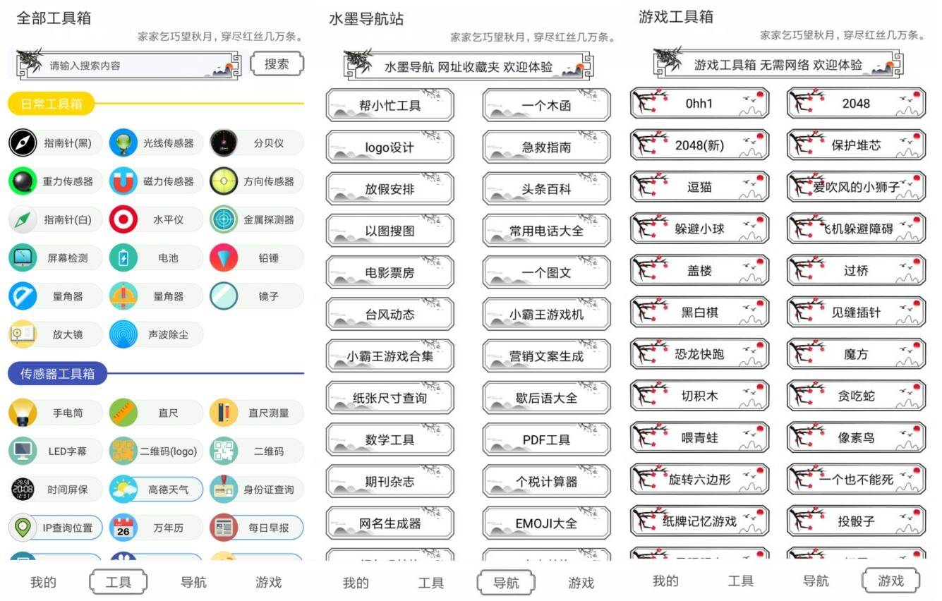 本软件免注册登录,没有任何广告,完全免费,简单好用,上百个功能,几十款游戏,