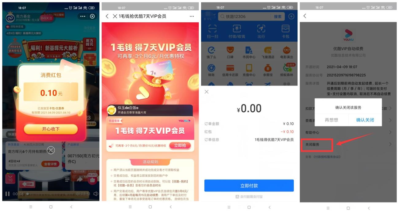 2、第二个二维码0.1元开通7天会员->用刚才领的红包就会抵扣