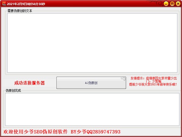 是一款非常好用的文章伪原创软件,能够帮助用户将文章的内容进行重新排版, 能有效避开搜索引擎的查重极致,是文章搬运的神器,使用起来非常方便 功能介绍: 1.软件拥有最强的AI伪原创引擎。 2.支持对文章进行伪原创处理,可以把你从网络当中复制的文章快速变成你自己的原创文章。