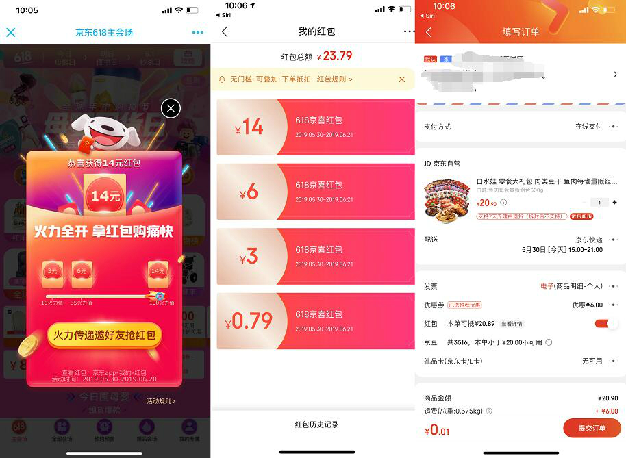 打开活动秒开1个红包,然后邀请好友帮你点链接得3+6+14=23元