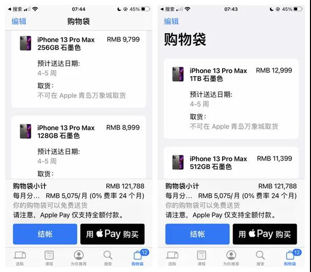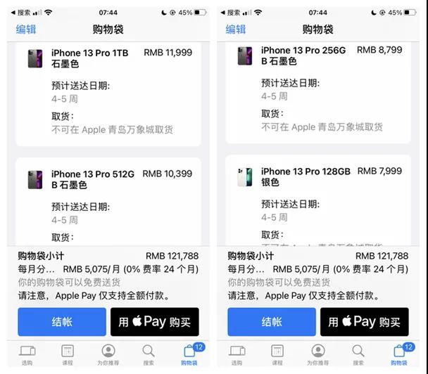 所有的配置都显示有多达一个月的延迟吗,店内的库存也不一样。 iPhone 13和iPhone 13 mini似乎受影响较小,预计发货延迟,所有商店都有货。